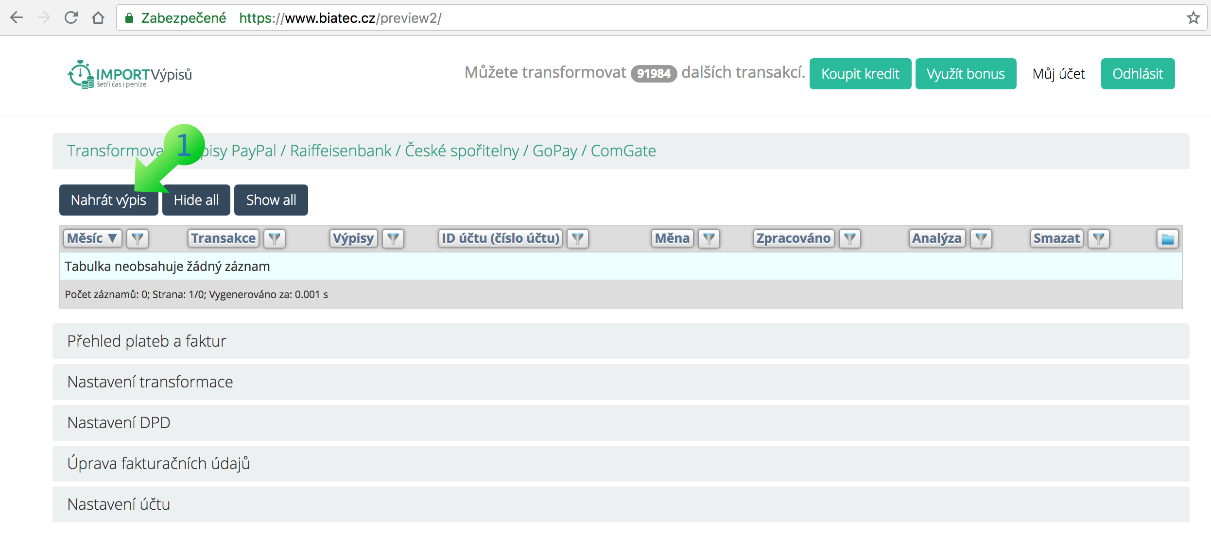 Porovnejte: náklady na transformaci + import výpisu: 30-40 Kč (nebo díky našemu slevovému systému o 50% méně).