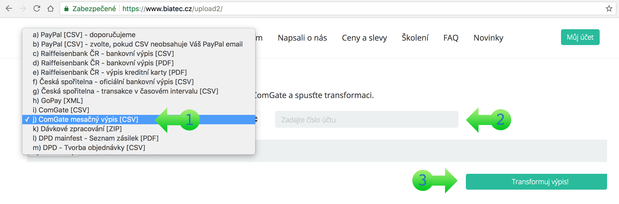Vše zvládnete ve třech jednoduchých krocích. Do 2 minut můžete importovat výpisy do vašeho účetního software. Ušetřte 98% času, který jste potřebovali na ruční zaúčtování transakcí.